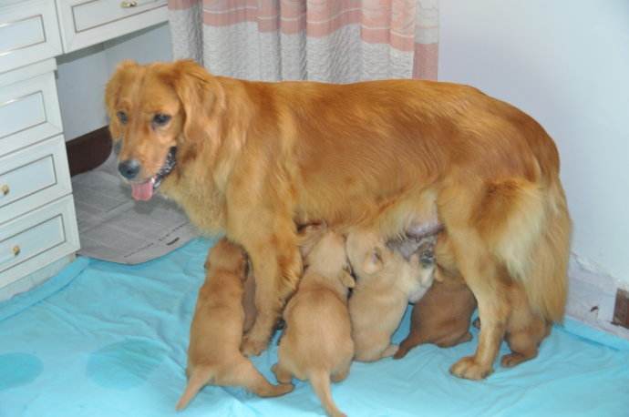 比如不小心生了十幾只的金毛媽媽,就真的需要一款營養豐富的狗糧來補一補了: 不然面對這么多張著嘴來討債的小崽子,這以后的日子還真不知怎么過......