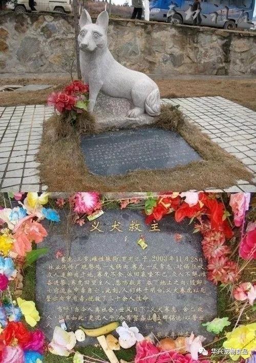 三十多個職工在煮一鍋肉準備吃,賽虎嗅出了肉里有毒,拼命吠叫阻止人們去吃,但人們不明白,以為狗想吃肉,就扔給它幾塊,但賽虎不吃,還是不停吠叫,甚至開始哀嚎。最后,在人們要去吃肉時,這只狗狗流著淚,一聲悲鳴,吃掉了地上的肉,當場中毒而死。九江市賀家山陵園總經理聽說后非常感動,把賽虎移葬到賀家山陵園,為這只舍身救人的義犬建造了雕像。移葬那天,有一百多人冒雨自發為賽虎送行……